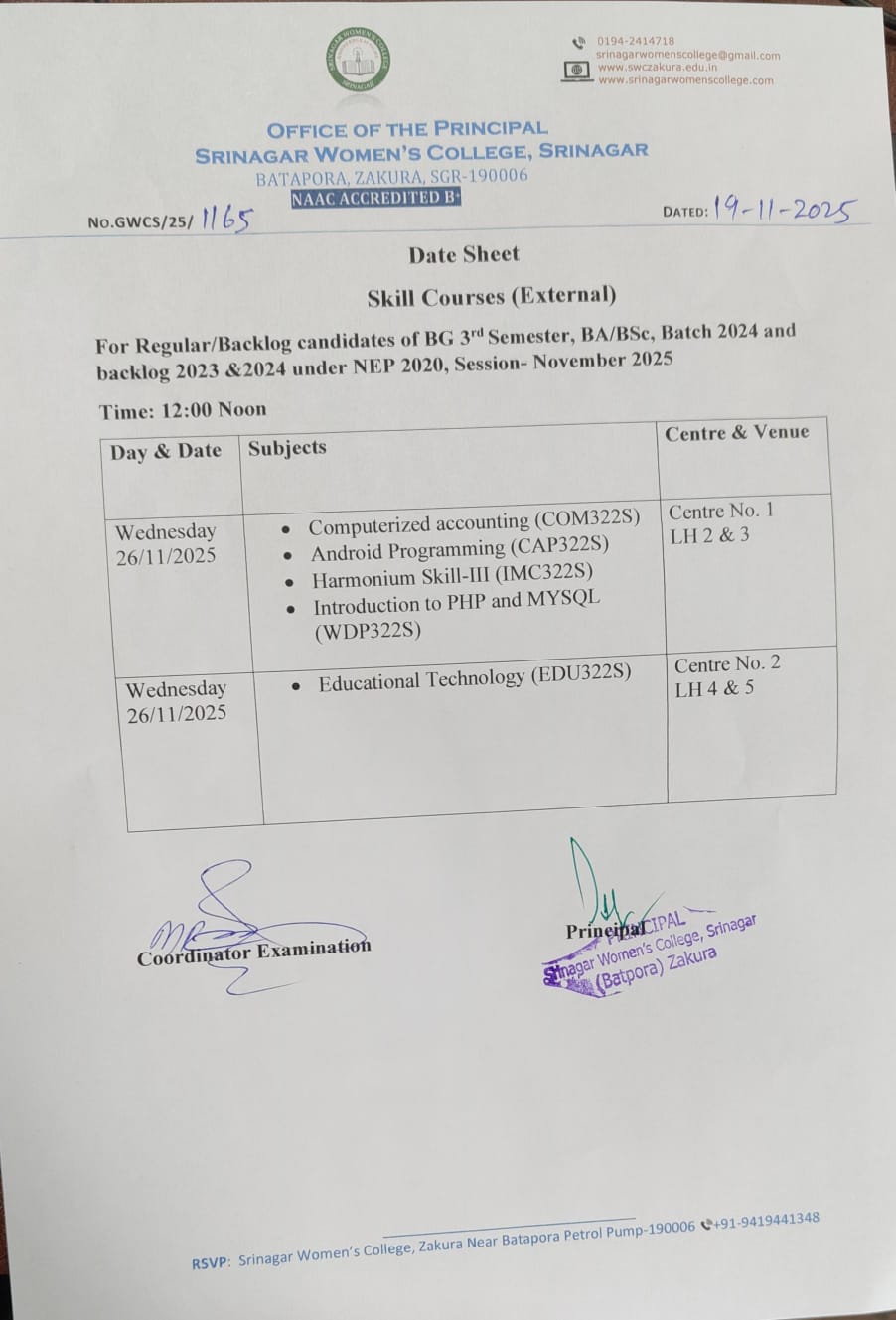 Srinagar Women’s College, Zakura, established in 2008, is a distinguished institution dedicated to empowering women through education. Initially functioning from the library block of Amar Singh College as a makeshift arrangement, it was relocated to its permanent campus at Batpora, Zakura in 2019. Situated at the foothills of the Zabarwan mountain range and alongside the iconic Dal Lake, the college offers a serene and inspiring environment for academic pursuits. Affiliated with the University of Kashmir and recognized by the University Grants Commission (UGC), the college received a &ld